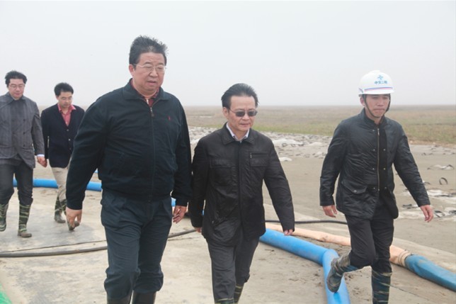 梁學(xué)忠董事長表示,徐立副秘書長一行深入條子泥匡圍工程現(xiàn)場,躬親踐行“三解三促”活動,是對我們工作的極大支持。條子泥匡圍工程是我省第一個嚴(yán)格按照基本建設(shè)規(guī)范實施的灘涂圍墾工程,一期工程于今年2月10日正式動工,目前主體工程已經(jīng)完成,完成吹沙袋土方62萬方,占計劃的83%;完成堤芯沙土方72萬方,占計劃的50.7%;鋪設(shè)軟體排40.5萬平米,占計劃的135%,初步形成陸域面積3.3萬畝。目前,我們正在組織協(xié)調(diào)設(shè)計、施工、監(jiān)理等參建單位以及相關(guān)科研院所,加強(qiáng)對條南片區(qū)龍口附近水文情況的勘測,對合龍方案進(jìn)行深入研究和技術(shù)創(chuàng)新,計劃于5月中旬實現(xiàn)龍口合龍。我們將按照徐立副秘書長此次在條子泥匡圍工程“三解三促”活動中提出的要求,進(jìn)一步統(tǒng)一思想,狠抓工作落實,全力推進(jìn)條子泥工程建設(shè),為全省沿海開發(fā)做出新的更大的貢獻(xiàn),向省委、省政府交上一份完美滿意的答卷!