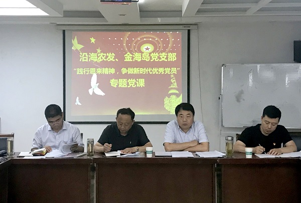 集團(tuán)黨委委員、副總經(jīng)理尤開軍為農(nóng)發(fā)公司、金海島公司支部黨員講黨課。