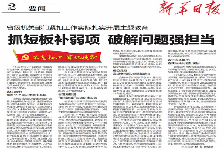 新華日報和學(xué)習(xí)強國江蘇平臺對集團(tuán)黨委領(lǐng)導(dǎo)班子成員深入基層調(diào)研、廣泛聽取意見、查找問題清單、落實專項整治的主題教育成果進(jìn)行了報道,重點宣傳了集團(tuán)推進(jìn)退圩還湖、“生態(tài)優(yōu)先、綠色發(fā)展”的新理念。找出差距,抓好落實,關(guān)系到如何守初心、擔(dān)使命,也關(guān)系到主題教育的實效。媒體報道了集團(tuán)黨委領(lǐng)導(dǎo)班子結(jié)合工作實際,直面40多個問題,開展解剖麻雀式的深入調(diào)研;堅持“抓重點、補短板、強弱項”,邊查邊學(xué)邊改,力促主題教育活動取得解決問題實效。