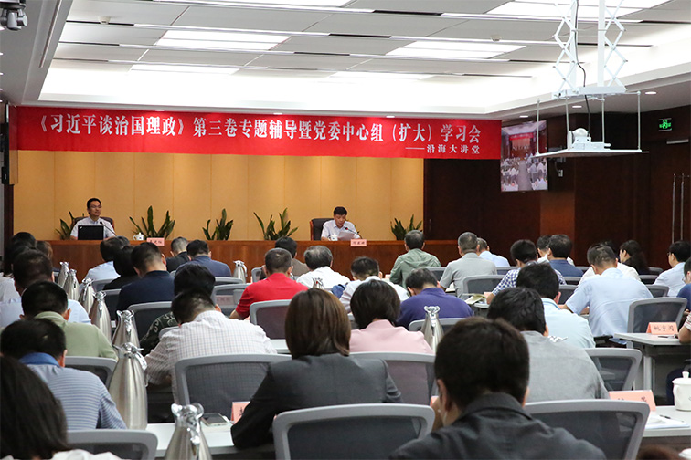 9月14日,省沿海集團(tuán)黨委舉辦《習(xí)近平談治國理政》第三卷專題輔導(dǎo)會暨黨委中心組(擴(kuò)大)學(xué)習(xí)會,聽取省委黨校教授李建柱關(guān)于深入學(xué)習(xí)貫徹《習(xí)近平談治國理政》第三卷的專題輔導(dǎo)報(bào)告。集團(tuán)黨委書記、董事長鄧東升主持會議。集團(tuán)領(lǐng)導(dǎo)班子成員,本部各部門、所屬企業(yè)黨員干部職工共360余人參加了專題輔導(dǎo)會。