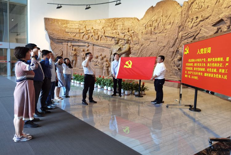 在黃橋戰(zhàn)役紀(jì)念館,全體黨員在黨旗前莊嚴(yán)地舉起右拳,重溫入黨誓詞,向黨表示自己的堅定政治信念,深切感悟作為一個共產(chǎn)黨人不能忘記的“初心”和必須牢記的“使命”。宣誓結(jié)束后,全體黨員參觀了紀(jì)念館,觀看歷史圖片、文物,一邊細(xì)看文物史料,一邊聆聽講解,學(xué)習(xí)黃橋戰(zhàn)役的歷史和精神。展館內(nèi),每一張浸透著革命歷史的老照片、每一幅真實場景的再現(xiàn)、每一段可歌可泣的紅色故事,都震撼著在場黨員同志的內(nèi)心。