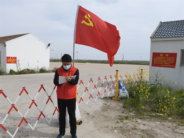 在射陽分公司北片生產(chǎn)區(qū)檢查口,迎風(fēng)飄揚(yáng)的黨旗分外鮮艷。為守好“卡口”第一道防線,射陽分公司副總經(jīng)理張立庚主動承擔(dān)起卡點(diǎn)值守任務(wù),并擔(dān)任“卡點(diǎn)”負(fù)責(zé)人?!澳壳拔覀兎譃?班、每班2人,24小時(shí)值守,實(shí)時(shí)對過往的車輛及人員進(jìn)行查驗(yàn)登記。這個(gè)卡點(diǎn)原來是開放式的,屬于兩個(gè)鄉(xiāng)鎮(zhèn)管理,區(qū)域內(nèi)還有30余戶村名和臨時(shí)住戶,人員構(gòu)成復(fù)雜,管理難度非常大?!睆埩⒏f,剛開始不少老百姓嫌麻煩,都有抵觸情緒,經(jīng)值守人員千方百計(jì)宣傳引導(dǎo),漸漸地得到大家的理解和支持。