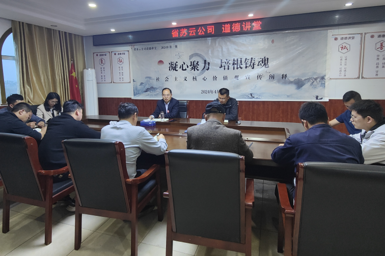 為大力培育和踐行社會(huì)主義核心價(jià)值觀,4月28日,蘇云公司以集中宣講的方式,組織開(kāi)展以“凝心聚力 培根鑄魂——社會(huì)主義核心價(jià)值觀宣傳闡釋”為主題的2024年第一期道德講堂活動(dòng)。公司副總經(jīng)理、工會(huì)主席楊健擔(dān)任主講,全體員工參加。