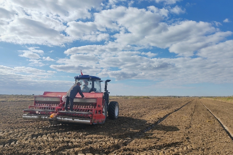 農(nóng)發(fā)射陽(yáng)分公司“優(yōu)質(zhì)稻麥”突擊隊(duì)面對(duì)連續(xù)不斷的雨水天氣,想法設(shè)法組合采用耕翻、曬田、3遍旋耕、正反旋播種的作業(yè)方式,克服黏土潮濕不易干的播種困難,“人停機(jī)不停”與時(shí)間賽跑,不分晝夜搶播小麥。4名突擊隊(duì)隊(duì)員兼任大隊(duì)長(zhǎng)崗位,以“干”促學(xué)、以“干”促練培育技術(shù)骨干,通過(guò)協(xié)調(diào)農(nóng)機(jī)、人員、物資等,嚴(yán)格把控生產(chǎn)流程,監(jiān)督生產(chǎn)質(zhì)量,確保每天播種進(jìn)度按計(jì)劃完成。