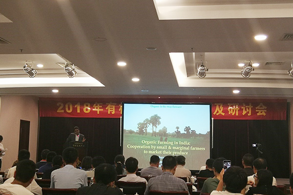 在為期兩天半的理論培訓(xùn)中,來自美國威斯康星大學(xué)、印度國家農(nóng)業(yè)發(fā)展委員會(huì)、農(nóng)業(yè)部全國農(nóng)技推廣中心、中國農(nóng)業(yè)科學(xué)院、農(nóng)業(yè)部南京農(nóng)業(yè)機(jī)械化研究所、南京農(nóng)業(yè)大學(xué)等多家高校、科研院所的教授、研究員傳經(jīng)送寶,其重點(diǎn)圍繞國內(nèi)外有機(jī)農(nóng)場發(fā)展現(xiàn)狀及相關(guān)政策、農(nóng)作物種植技術(shù)、病蟲草害有機(jī)防治及肥料管理方案、智慧農(nóng)場運(yùn)營及種植管理體系、農(nóng)產(chǎn)品銷售方式等主題進(jìn)行培訓(xùn)及研討,細(xì)化為“現(xiàn)代農(nóng)機(jī)裝備與有機(jī)農(nóng)業(yè)機(jī)械化生產(chǎn)技術(shù)”、“有益微生物驅(qū)動(dòng)的全程有機(jī)、綠色果蔬種植體系”、“有益微生物驅(qū)動(dòng)的有機(jī)種植體系在水稻上的應(yīng)用”、“有益微生物驅(qū)動(dòng)的全程水稻有機(jī)種植體系”、“有機(jī)種植蔬菜育苗技術(shù)”、“互聯(lián)網(wǎng)+思維下的智慧農(nóng)業(yè)”、“稻田小龍蝦生態(tài)高效種養(yǎng)技術(shù)”等12個(gè)專題講座。會(huì)議期間,來自全國各地的4家單位分享其有機(jī)種植經(jīng)驗(yàn),會(huì)務(wù)組組織與會(huì)代表參觀有機(jī)農(nóng)場。