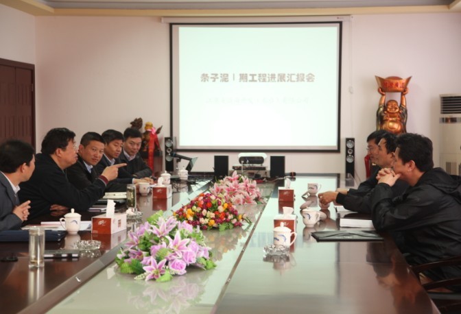 梁學(xué)忠董事長(zhǎng)介紹條子泥I期工程進(jìn)展情況