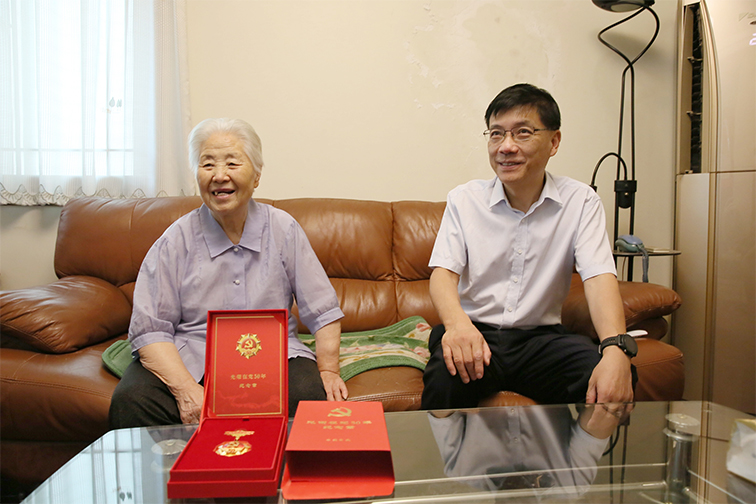 集團(tuán)黨委書記、董事長鄧東升來到柳敏家中,與其親切交談,仔細(xì)詢問她的生活起居情況和身體健康狀況。1928年出生的柳敏已有93歲高齡,當(dāng)看到老人身體硬朗,子女常伴身邊盡孝,鄧東升非常欣慰的表示,集團(tuán)黨委沒有忘記老黨員長期以來的無私奉獻(xiàn)和為黨的事業(yè)發(fā)展作出的貢獻(xiàn),祝愿她健康長壽,保重身體,安享幸福晚年。當(dāng)了解到柳敏老人前往定點醫(yī)院體檢路程較遠(yuǎn),行動不便時,鄧東升當(dāng)即表示,集團(tuán)有關(guān)部門會做好對接,安排專人專車接送老人,周全保障老人體檢。同時囑咐隨行人員要時刻把老黨員的冷暖掛在心頭,多多了解老同志的困難和需求,主動為他們排憂解難,及時反饋,竭盡全力為他們解難題、辦實事,讓他們充分感受到組織的溫暖。鄧東升向柳敏頒發(fā)“光榮在黨50年”紀(jì)念章時表示,集團(tuán)黨委執(zhí)行中共中央決定,向黨齡達(dá)到50周年、一貫表現(xiàn)良好的黨員致以崇高的敬意,讓老黨員深切感受到以習(xí)近平同志為核心的黨中央的關(guān)懷和溫暖。