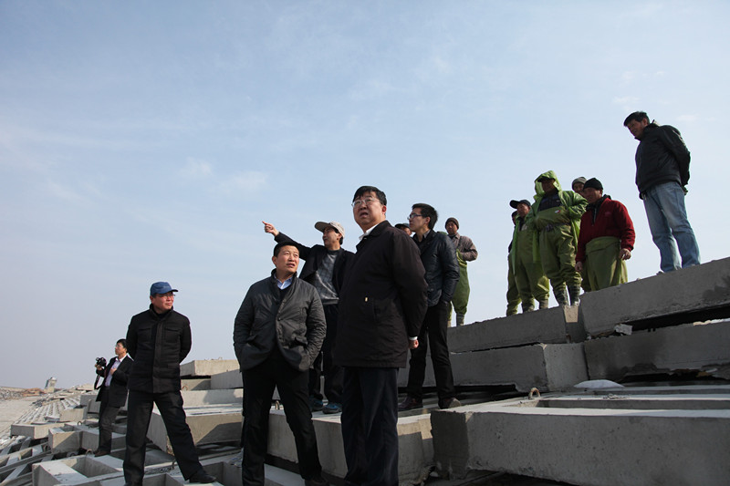 2月21日,集團(tuán)公司董事長梁學(xué)忠來到條子泥項(xiàng)目工程施工現(xiàn)場,檢查節(jié)后工地復(fù)工和北側(cè)港道擺動(dòng)對(duì)北堤的影響情況。集團(tuán)公司副總經(jīng)理陳才俊、東臺(tái)公司總經(jīng)理周金陽、副總經(jīng)理王海祥等陪同。