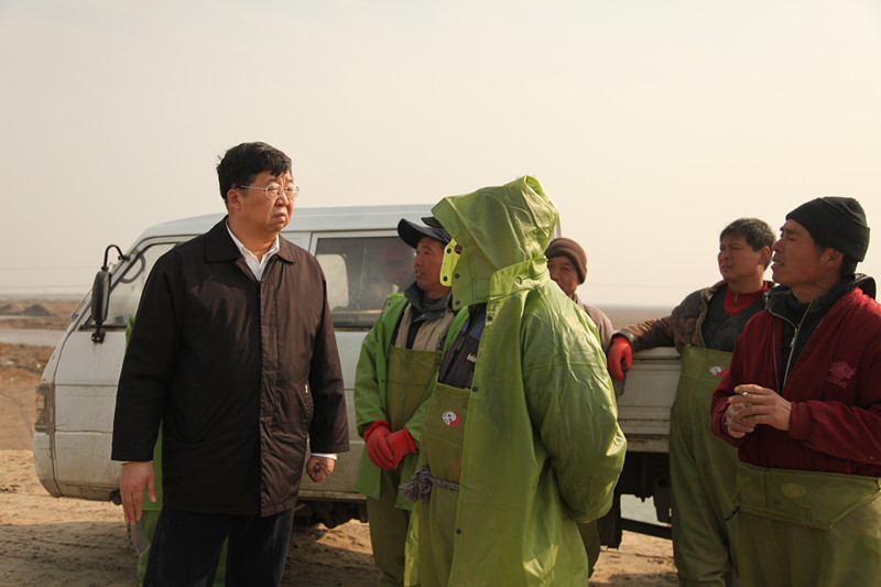 隨后,梁董事長來到正在施工的條北片四標(biāo)段現(xiàn)場,實(shí)地查看了4#隔堤及東堤施工斷面。4#隔堤目前已施工至龍口位置,正在進(jìn)行閉氣土回填。梁董事長詢問了龍口保護(hù)及合龍準(zhǔn)備情況,對(duì)龍口保護(hù)措施的落實(shí)及施工方雙棱體合龍的方案表示認(rèn)可。在3.6萬畝已實(shí)現(xiàn)合龍的片區(qū),在聽取施工單位中水十三局的匯報(bào)后,梁董事長要求爭取四月初完成全部土方工程,六月初實(shí)現(xiàn)防護(hù)工程達(dá)到防汛斷面標(biāo)準(zhǔn)。梁董事長指出,這一次工程安排在冬季開工,就是要抓住潮汛影響小的有利時(shí)機(jī),既利于龍口合龍、又利于圍堤穩(wěn)定,還能很好地保障安全度汛,希望施工單位再接再厲,永不松懈,力爭提前完成全部工程。