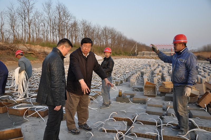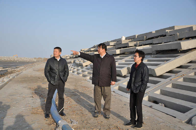 3月21日,集團(tuán)公司董事長、黨委書記梁學(xué)忠來到條子泥匡圍項(xiàng)目施工現(xiàn)場,察看工程建設(shè)情況,省沿海開發(fā)(東臺)公司總經(jīng)理周金陽陪同。