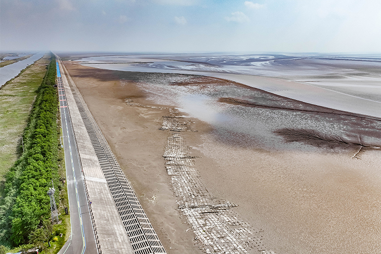 數(shù)據(jù)顯示,3 月 29 日,距堤腳最近處距離為 140m;至 4 月 20 日,西大港分支潮溝距離已縮短至 68m。隨著汛期臨近,潮水動(dòng)力增強(qiáng)將進(jìn)一步加快港道向岸灘侵蝕逼近,后期潮溝系統(tǒng)將進(jìn)入一段變化更快、更加不可預(yù)測的調(diào)整,嚴(yán)重威脅海堤安全,亟需采取應(yīng)急搶險(xiǎn)措施。