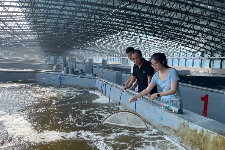 “該模式依賴于設(shè)備設(shè)施和生產(chǎn)管理,不僅需要管理者具備水產(chǎn)專業(yè)理論知識(shí)和經(jīng)驗(yàn),還需要機(jī)械、生物、化學(xué)等多方面領(lǐng)域知識(shí)支撐。”2023年8月,省沿海集團(tuán)海洋產(chǎn)業(yè)團(tuán)隊(duì)成員孫璐艷作為江蘇省第十六批科技鎮(zhèn)長(zhǎng)團(tuán)團(tuán)員來到連云港贛榆農(nóng)業(yè)發(fā)展集團(tuán)掛職,全程參與項(xiàng)目一線工作,緊盯養(yǎng)殖過程中水、電、熱等配套建設(shè)情況,與施工團(tuán)隊(duì)合力設(shè)計(jì)改造養(yǎng)殖池增氧系統(tǒng),并根據(jù)養(yǎng)殖不同階段改造排蝦框、中央攔蝦套網(wǎng),對(duì)車間養(yǎng)殖池進(jìn)行消毒、設(shè)備調(diào)試等。從“實(shí)驗(yàn)場(chǎng)”走向“應(yīng)用場(chǎng)”,創(chuàng)新力量持續(xù)領(lǐng)跑。