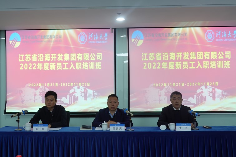 11月21日上午,集團(tuán)副總經(jīng)理田鎖慶出席開班儀式并作動(dòng)員講話。田鎖慶介紹了集團(tuán)概況、十三五及十四五初期以來集團(tuán)取得的發(fā)展成就,并對(duì)大家提出了四點(diǎn)期望:一是要以德立身,爭(zhēng)做德才兼?zhèn)涞难睾H耍欢且獝燮缶礃I(yè),爭(zhēng)做踏實(shí)奉獻(xiàn)的沿海人;三是要加強(qiáng)學(xué)習(xí),爭(zhēng)做勤學(xué)善思的沿海人;四是要掌握方法,爭(zhēng)做善于工作的沿海人。田鎖慶希望新員工在今后的工作和學(xué)習(xí)中抓好貫徹落實(shí),勤學(xué)好問,扎實(shí)工作,積極進(jìn)取,早日實(shí)現(xiàn)角色轉(zhuǎn)變,力爭(zhēng)成長(zhǎng)為集團(tuán)的棟梁之才,為集團(tuán)的高質(zhì)量發(fā)展和創(chuàng)建一流企業(yè)作出自己應(yīng)有的貢獻(xiàn)。培訓(xùn)承辦單位河海大學(xué)朱亞院長(zhǎng)在開班儀式上致辭,學(xué)員代表劉寧作表態(tài)發(fā)言。