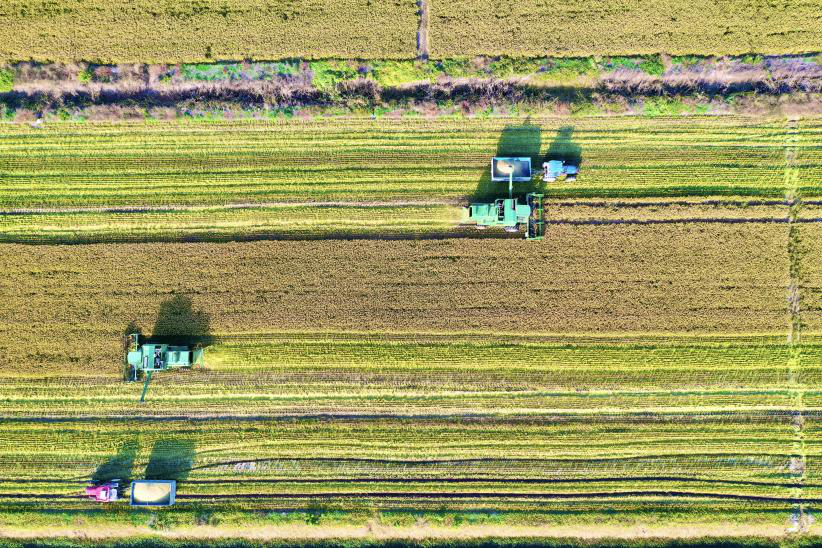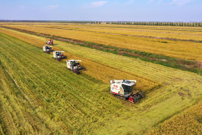 喜看稻菽千重浪,土地流金萬年豐。秋風(fēng)再起,拂起滿地斑斕的豐收色彩,稻谷飄香,又是一年豐收時(shí)節(jié)。江蘇省沿海開發(fā)集團(tuán)農(nóng)發(fā)射陽分公司的現(xiàn)代農(nóng)業(yè)生產(chǎn)示范基地,多臺收割機(jī)一路“高歌猛進(jìn)”,濃厚的秋意匯聚在每一粒飽滿的稻谷里,順著卸糧桶涌進(jìn)了每個(gè)人的心里。秋收進(jìn)行時(shí),走進(jìn)射陽,赴一場豐收之約。