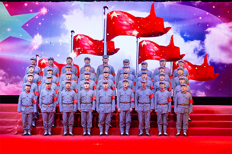 盛世華誕篇章中《東方紅》《追尋》《我和我的祖國》等歌曲的演繹充滿對祖國的深情與熱愛;星火燎原篇章中《工農(nóng)兵聯(lián)合起來》《人民軍隊心向黨》《映山紅》《蘇區(qū)干部好作風(fēng)》《過雪山草地》仿佛帶大家回到了當(dāng)年共產(chǎn)黨人野火燒不盡,春風(fēng)吹又生的革命年代;抗日烽火篇章中《河邊對口曲》《彈起我心愛的土琵琶》《地道戰(zhàn)》《保衛(wèi)黃河》還原軍民一心、誓死抗日的場景,觸動人心;戰(zhàn)地黃花篇章中《解放區(qū)的天》《南泥灣》《延安頌》《繡紅旗》《我的祖國》給大家?guī)砹朔榛鹣鯚熤械陌矊幣c希望;火紅年代篇章中《社會主義好》《學(xué)習(xí)雷鋒好榜樣》《我們走在大路上》《我為祖國獻石油》讓大家感受到了為建設(shè)祖國貢獻力量的自豪之情;改革春風(fēng)篇章中《春天的故事》《我的中國心》以及青春回響組合等節(jié)目充滿對祖國未來的信心與新時代中國人的活力;走向復(fù)興篇章中《不忘初心》《中國脊梁》《陽光路上》《走向復(fù)興》等歌曲斗志昂揚,將整個歌詠會推向高潮,全體沿海人為祖國更好的明天歡欣鼓舞,最后,歌詠會在全體演員《歌唱祖國》的歌聲中落下帷幕。