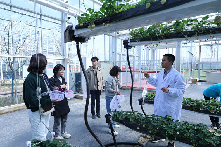“我們采用的是無土栽培技術(shù),生長全過程用電腦系統(tǒng)控制,自動(dòng)澆灌水、營養(yǎng)液,調(diào)節(jié)溫度等,很大程度上節(jié)省了人工成本,提高了產(chǎn)值效益......”傅家邊現(xiàn)代農(nóng)業(yè)科技園內(nèi),大家一邊品嘗不同品種的草莓,一邊聽工作人員講解現(xiàn)代草莓種植技術(shù),全程收獲滿滿。現(xiàn)代農(nóng)業(yè)是集團(tuán)三項(xiàng)主業(yè)之一,此次參觀傅家邊農(nóng)業(yè)科技園讓大家更加認(rèn)識(shí)到科技興農(nóng)的重要性。
