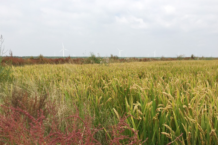 條子泥墾區(qū)是2009年我省沿海開發(fā)上升為國家戰(zhàn)略后進行匡圍的重點工程,于2014年完工,隨即進行開發(fā)配套建設(shè),于去年基本完成。據(jù)介紹,條子泥條北墾區(qū)首次大面積種植7230畝水稻,是由沿海集團下屬江蘇省沿海開發(fā)(東臺)公司和鹽城師范學院江蘇灘涂生物農(nóng)業(yè)協(xié)同創(chuàng)新中心、江蘇省鹽土生物資源研究重點實驗室、南京北盛榮能源科技有限公司共同開發(fā)。與以往鹽堿地改良先養(yǎng)七八年魚,再進行水稻種植不同,這片處女地頭年直接播種水稻。眼下開鐮在即,鹽城市農(nóng)科院技術(shù)人員對其中18個田塊進行測產(chǎn),理論畝產(chǎn)523.3公斤,其中408號田理論單產(chǎn)高達737.5公斤,達到每公頃10.5噸的“超高產(chǎn)”指標。以凌啟鴻為主任委員的專家組對水稻進行測產(chǎn)核驗,認為“數(shù)據(jù)與所在田水稻實際情況甚為符合”。