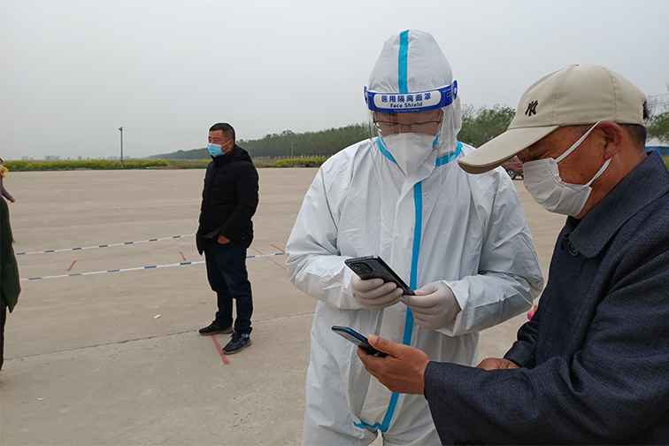 4月15日射陽(yáng)本土發(fā)生疫情,屬地防疫部門(mén)省沿海農(nóng)發(fā)射陽(yáng)分公司金海片北曬場(chǎng)設(shè)立一處核酸采樣點(diǎn),得知志愿者人手短缺,生產(chǎn)技術(shù)部技術(shù)員陳靚第一時(shí)間請(qǐng)纓?!拔覀兦嗄耆藨?yīng)該扛起這份責(zé)任,全力以赴保障大家的安全?!绷私獾疆?dāng)?shù)赜行袆?dòng)不便的老人無(wú)法到場(chǎng)做核酸后,他將現(xiàn)場(chǎng)工作處理妥當(dāng),立刻帶著采樣用品趕往老人家中。截至4月24日,陳靚參與地方全員核酸檢測(cè)志愿服務(wù)8輪,配合社區(qū)工作人員共采集核酸4800余人次,圓滿完成了公司金海片區(qū)域內(nèi)核酸采集任務(wù)。