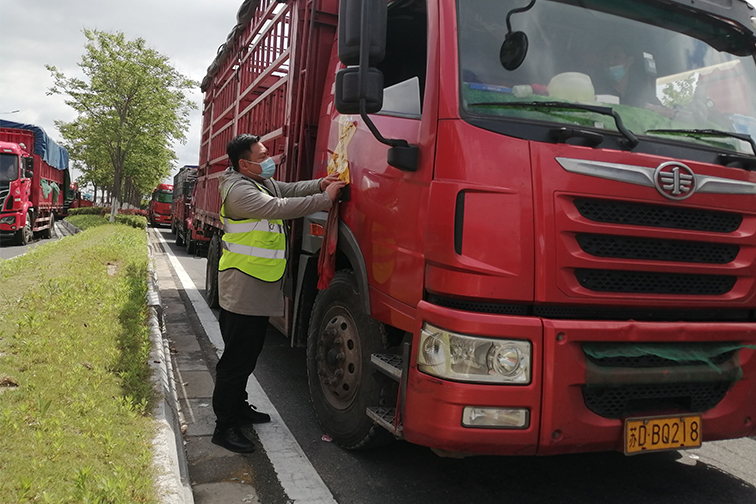 (朱金寶負(fù)責(zé)在高速出入口對(duì)接貨車(chē)進(jìn)出墾區(qū))