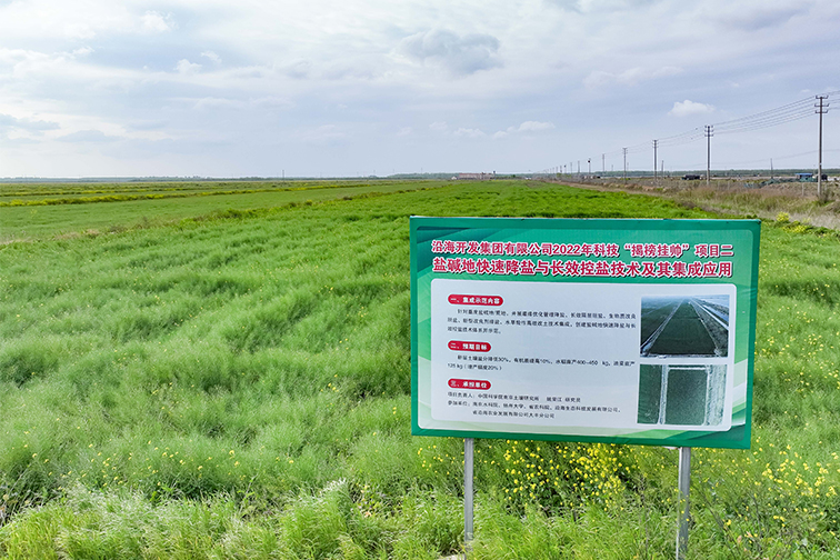 這里毗鄰黃海,部分耕地受土壤鹽分含量高、地下水埋深淺、水質性缺水或季節(jié)性缺水等因素影響,土地鹽堿化嚴重且持久反復,土壤亟待改良、地力亟待提升。據相關負責人介紹,2022年初,省沿海集團所屬土地公司通過“揭榜掛帥”形式聯(lián)合中國科學院南京土壤研究所和集團所屬科技公司共同開展項目研究,全力培育鹽堿地快速降鹽與長效控鹽關鍵技術,著力解決作物產量低下或絕產等問題。