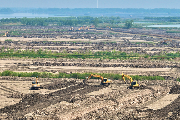 為清退湖泊保護(hù)范圍內(nèi)歷史圩區(qū),恢復(fù)湖泊自由水面,有效增加湖泊水環(huán)境容量,改善湖區(qū)生態(tài),2022年10月,省沿海集團(tuán)所屬土地公司、咨詢公司與中交上海航道局有限公司作為聯(lián)合體共同承接了寶應(yīng)湖退圩還湖項(xiàng)目,項(xiàng)目在保障湖泊防洪供水能力、改善湖泊與沿岸自然生態(tài)環(huán)境的同時(shí),利用廢棄底泥進(jìn)行土地復(fù)墾,提升高質(zhì)量多品種土地的供給能力和保護(hù)能力,增強(qiáng)土地供需動(dòng)態(tài)平衡能力,探索生態(tài)價(jià)值轉(zhuǎn)換路徑,為全省發(fā)展提供補(bǔ)充耕地儲(chǔ)備。