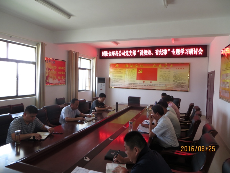 8月25日下午,金海島公司黨支部在辦公樓一樓會議室舉行了“講規(guī)矩,有紀(jì)律”專題學(xué)習(xí)研討會,支部書記薛太華同志主持了會議。會議首先組織大家集體學(xué)習(xí)了《中國共產(chǎn)黨章程(總則)》以及《習(xí)近平總書記系列重要講話讀本(實(shí)干才能夢想成真)》,之后,由陸中陽同志、王成同志以及王東同志就其最近的兩學(xué)一做學(xué)習(xí)情況,發(fā)表自己對“講規(guī)矩,有紀(jì)律”的感想。