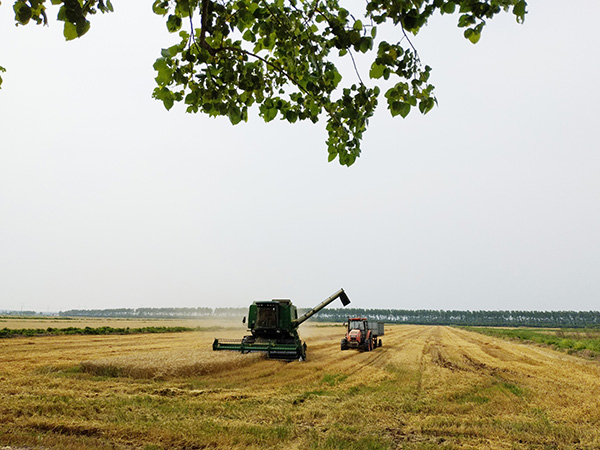 為確保小麥夏收工作順利完成,在公司領(lǐng)導(dǎo)的帶領(lǐng)下,金東臺公司組織員工及合作社成員召開了小麥夏收工作會議,通報(bào)了小麥?zhǔn)斋@期實(shí)施辦法,成立了夏收工作組,細(xì)化了職責(zé)及目標(biāo),研究了小麥?zhǔn)斋@過程中可能存在的問題及解決辦法。在小麥?zhǔn)崭钸^程中,工作組成員白天輪班值守于收割現(xiàn)場,監(jiān)督、記錄小麥?zhǔn)崭罟ぷ鳎雇碜∷捃囍?,看守于麥場,確保小麥安全無誤。考慮到6月9日可能出現(xiàn)的降雨天氣,為避免損害小麥質(zhì)量,影響銷售價(jià)格,公司與合作社協(xié)商,加緊開展小麥銷售工作,經(jīng)過多家詢價(jià)、商談,決定以1.11元/斤的價(jià)格出售。小麥銷售過程中,夏收工作組成員全體出動(dòng),配合、監(jiān)督小麥銷售工作,要求每輛運(yùn)輸車有一名員工跟隨,并分別于閘口、川東糧庫對小麥毛重(麥重+車重)和車重進(jìn)行二次稱量并記錄,確保小麥銷售無誤。經(jīng)過全體人員的努力,最終在6月9日凌晨3點(diǎn)順利完成麥季合營工作。