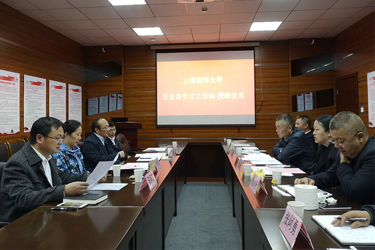在充分溝通協(xié)商的基礎(chǔ)上,東臺公司與上海海洋大學草簽了《校企合作意向書》,東臺市人社局與上海海洋大學草簽了《校地合作框架協(xié)議》,并舉行了“東臺市引才工作站”掛牌儀式。