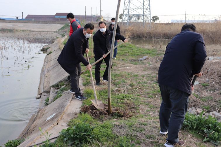 三月春風怡人,當天暖陽當空,大家在嚴格做好個人防護的同時,紛紛拿起鐵鍬、鋤頭等工具,有的揮鍬鏟土,有的栽植澆灌,認真完成樹苗栽植的每一道工序。經過1個多小時的勞動,一排女貞樹、水蜜桃樹、碭山梨樹、杏樹等迎風傲立。看著親手栽下的樹苗,大家臉上洋溢著勞動的喜悅。