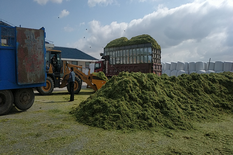 田里青貯大麥綠意盎然,正是收獲的好時(shí)節(jié)。五一期間,一輛輛卡車一字排開,整齊地停靠在路旁,等待著青貯大麥裝滿貨倉(cāng)。田里大型克拉斯收割機(jī)縱情馳騁,盡可能的將青貯大麥一株不少的收割上來(lái)。生產(chǎn)技術(shù)部種植團(tuán)隊(duì)每天堅(jiān)守收割現(xiàn)場(chǎng),監(jiān)督車輛過磅和收割質(zhì)量,確保每輛離開墾區(qū)的卡車都記錄在冊(cè),田間收割不留死角。他們欣慰地笑看滿載 的卡車,那里承載的是他們一整季的辛勤汗水。