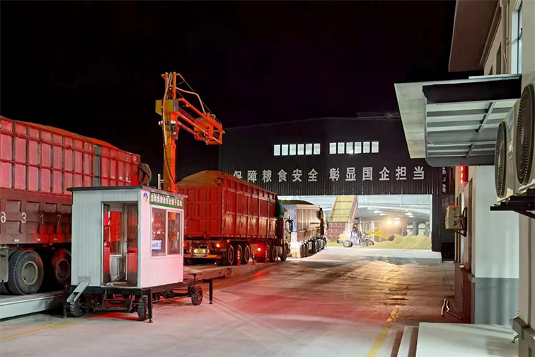 已是立冬,烘干基地的燈火仍舊徹夜通明,車(chē)間墻壁上“勇毅奮進(jìn),以沿海精神堅(jiān)守糧食安全”巨幅標(biāo)語(yǔ)格外耀眼,潮糧除雜、掛糧清理、二次烘干工作有條不紊進(jìn)行。鮑立偉說(shuō),潮糧水分高、雜質(zhì)多,進(jìn)入烘干前,先要進(jìn)行除雜,避免造成輸送設(shè)備堵料。烘干巡檢員必須不間斷巡查,發(fā)現(xiàn)堵料立即清理維護(hù),他們?cè)谠胍舸?、灰塵多的環(huán)境中連續(xù)工作12小時(shí),其辛苦不由言說(shuō)?!俺奔Z容易出現(xiàn)掛糧現(xiàn)象,不及時(shí)清理就會(huì)導(dǎo)致掛糧霉變”,鄒將是大豐糧食科技產(chǎn)業(yè)園現(xiàn)場(chǎng)負(fù)責(zé)人,他每天帶領(lǐng)工人從20米高的倉(cāng)頂進(jìn)入潮糧封閉倉(cāng)內(nèi),打著手電筒,一節(jié)一降清理掛糧。每次現(xiàn)場(chǎng)監(jiān)督,鄒將的心都提到嗓子眼處,時(shí)刻緊盯工人的每一步操作,一直到清理完畢工人們解下安全帶,他才稍稍松口氣。二次烘干是借助現(xiàn)代科技減緩高峰時(shí)潮糧積壓的有效方法,基地現(xiàn)場(chǎng)負(fù)責(zé)人杜慶華說(shuō),從降低部分水分到烘干至國(guó)家標(biāo)準(zhǔn),一車(chē)糧食大概需要30個(gè)小時(shí),當(dāng)下的高壓狀態(tài)需要持續(xù)到11月20日左右,但是沒(méi)有一個(gè)人抱怨,沒(méi)有一個(gè)人臨陣脫逃,堅(jiān)守糧食安全是每個(gè)沿海人內(nèi)心不變的信仰,打通糧食安全“最后一公里”是大家共同的責(zé)任與擔(dān)當(dāng)。