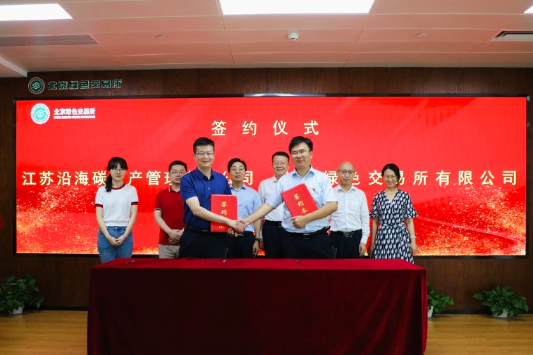 7月12日上午,江蘇沿海碳資產(chǎn)管理有限公司(以下簡稱“江蘇沿海碳資產(chǎn)”) 與北京綠色交易所有限公司(以下簡稱“綠色交易所”)簽署戰(zhàn)略合作協(xié)議。江蘇省沿海開發(fā)集團(tuán)副總經(jīng)理、黨委委員胡國平,綠色交易所董事長王乃祥等領(lǐng)導(dǎo)出席簽約儀式。